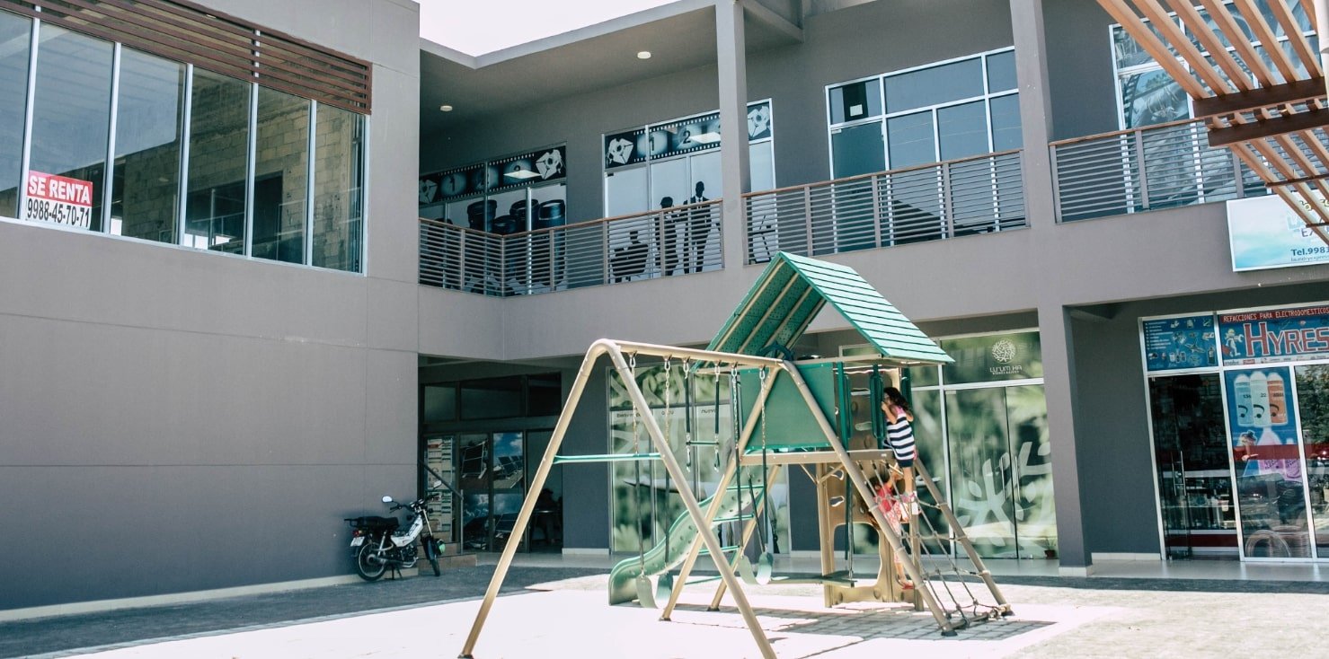 Con dos pisos y 2000 m2 cuadrados de espacio rentable, este desarrollo en Cancún Quintana Roo cuenta cuenta con todo lo necesario para que las distintas marcas se instalen en alguno de sus espacios de 50 metros cuadrados.